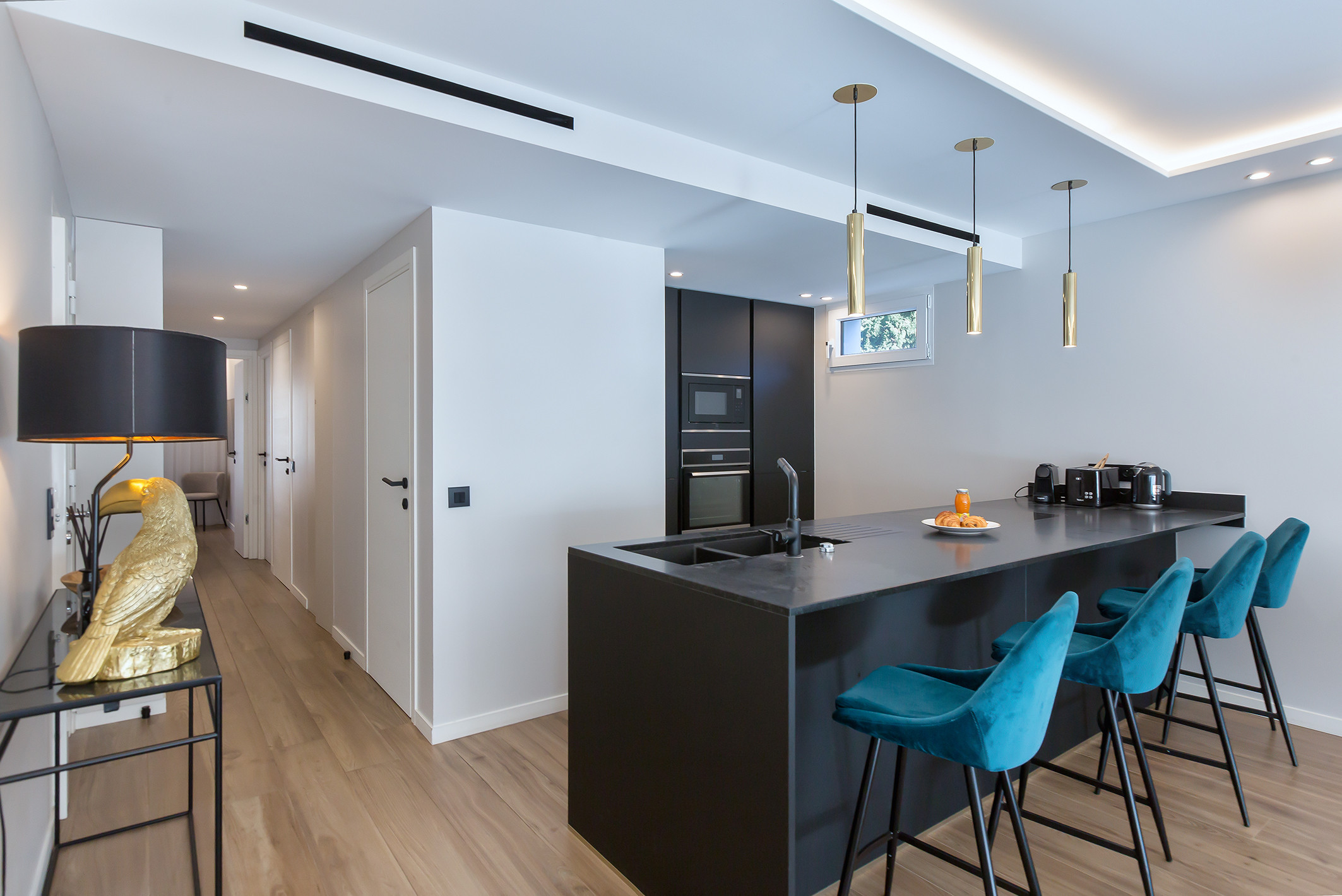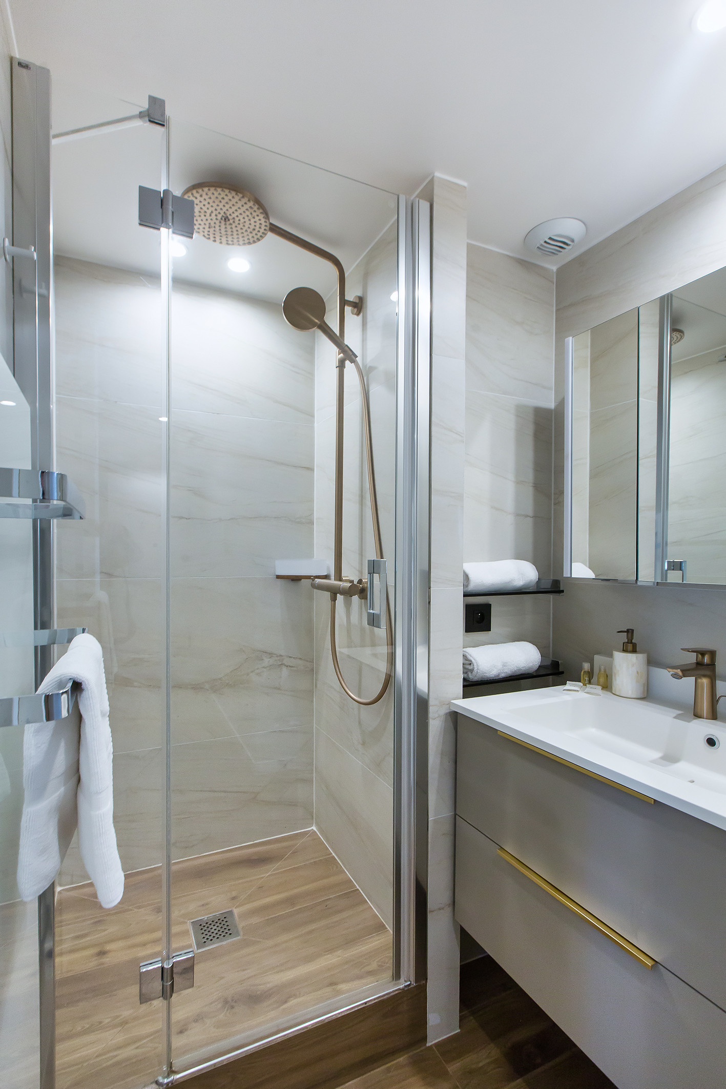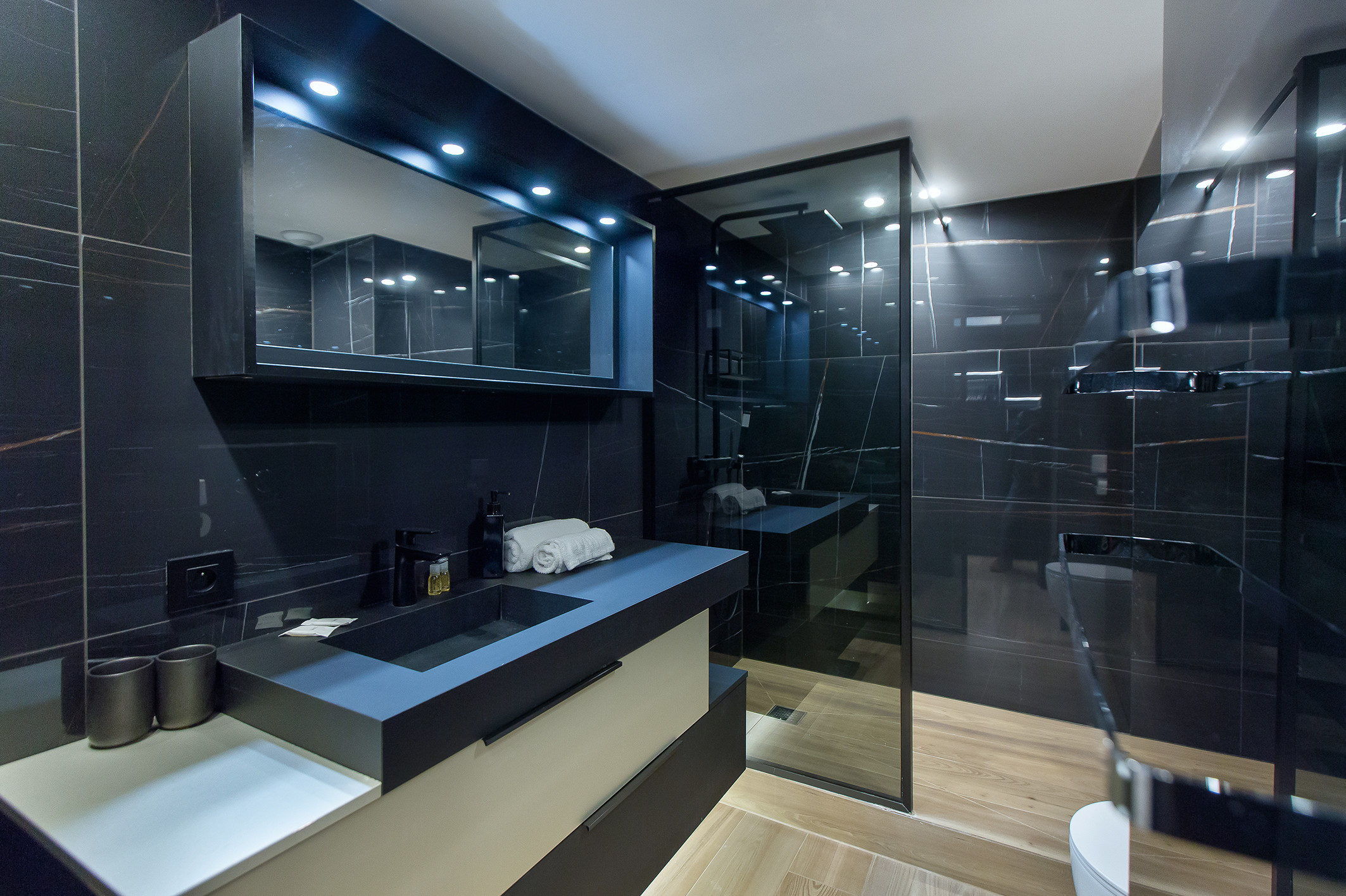The night space consists of three elegant and carefully designed rooms, offering peace and privacy to each occupant. The apartment has two modern bathrooms, one of which is adjoining one of the bedrooms, ensuring optimal comfort and smooth organisation for multiple people.