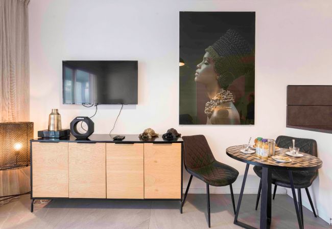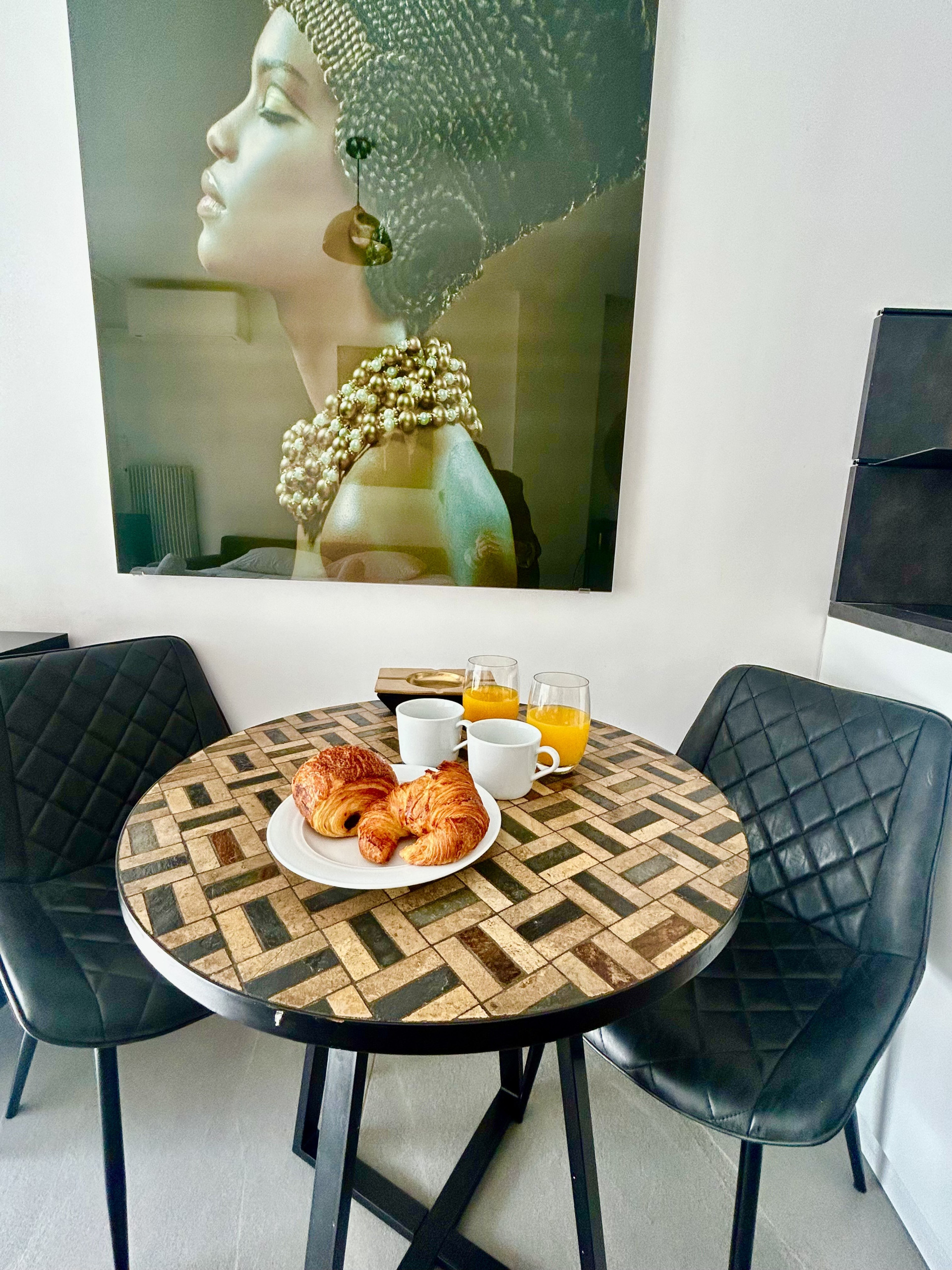 L’appartement dispose de deux chambres confortables, d’une salle de bain moderne avec une douche, ainsi que d’un séjour lumineux avec une cuisine ouverte entièrement équipée. La décoration, élégante et soignée, a été pensée avec goût pour créer une atmosphère chaleureuse et contemporaine, idéale pour se détendre après une journée en ville ou à la plage.